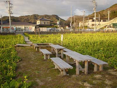 下田駅から南伊豆へ向かった場合に竹麻小学校のところで直進すると弓ヶ浜方面への県道、右折すると下賀茂商店街方面への国道というルートに分かれるわけですが、このエリアが全国的にも菜の花で有名な青市・日野地区です。