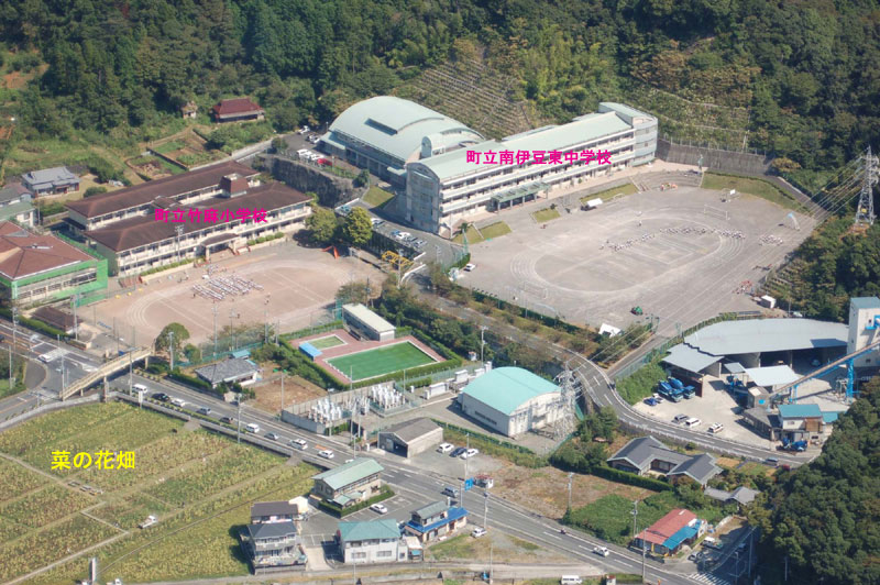 下田駅から南伊豆へ向かった場合に竹麻小学校のところで直進すると弓ヶ浜方面への県道、右折すると下賀茂商店街方面への国道というルートに分かれるわけですが、このエリアが全国的にも菜の花で有名な青市・日野地区です。